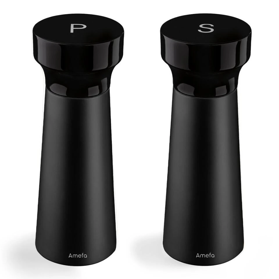 Breng je eten op smaak met deze trendy Amefa peper- en zoutmolenset. Door het moderne design en combinatie van mat en hoogglans zijn dit ware eyecatchers op tafel! Dankzij het sterke rubberwood en de hoge kwaliteit slijpers zijn de molens zeer duurzaam.