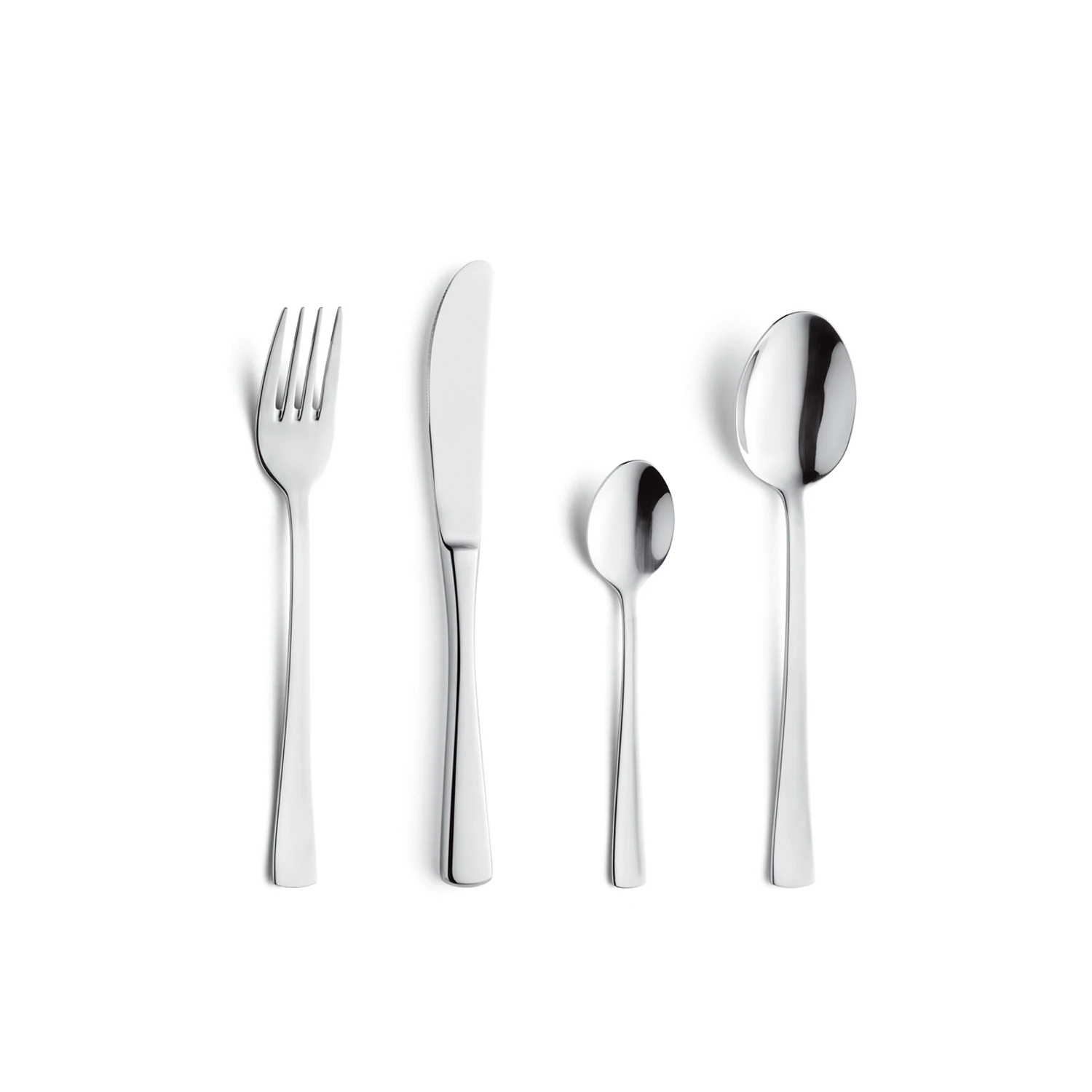 Dit eigentijdse bestekmodel van Amefa dankt zijn naam aan de Romeinse god Neptunus. God van de golven en het stromende water, altijd afgebeeld met zijn 3-tand in de hand. De combinatie van de rechte lijnen van de handvatten en sierlijke vormen daarboven vertegenwoordigen deze beeltenis. Het bestek is gemaakt van 2,5mm dik 18/0 staal en is vaatwasmachinebestendig. Deze 24-delige bestekset bestaat uit: 6 tafelmessen, 6 tafelvorken, 6 tafellepels en 6 koffielepels.