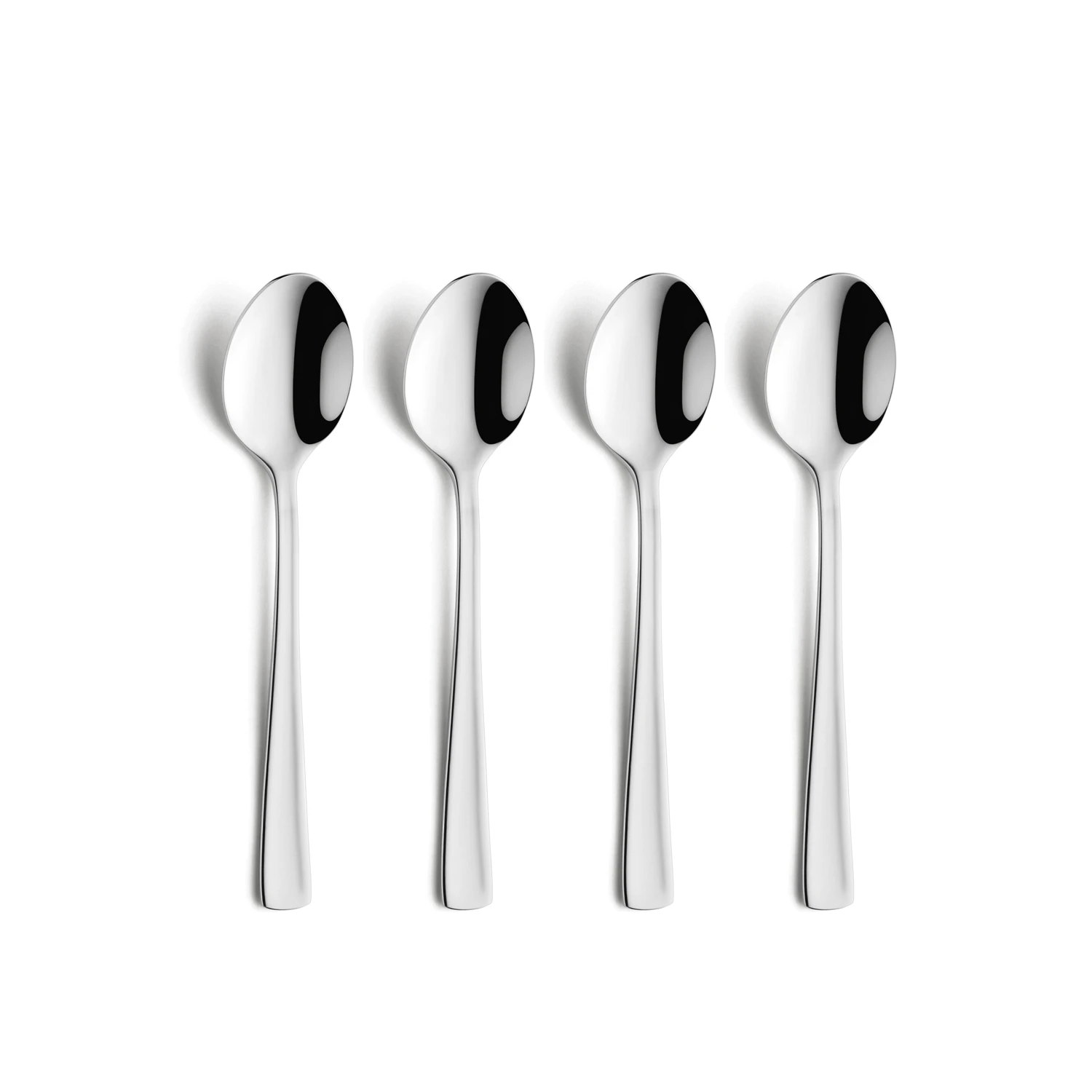 Dit eigentijdse bestekmodel van Amefa dankt zijn naam aan de Romeinse god Neptunus. God van de golven en het stromende water, altijd afgebeeld met zijn 3-tand in de hand. De combinatie van de rechte lijnen van de handvatten en sierlijke vormen daarboven vertegenwoordigen deze beeltenis. Deze 4-delige set koffielepels hebben een afmeting van 13,8 cm.